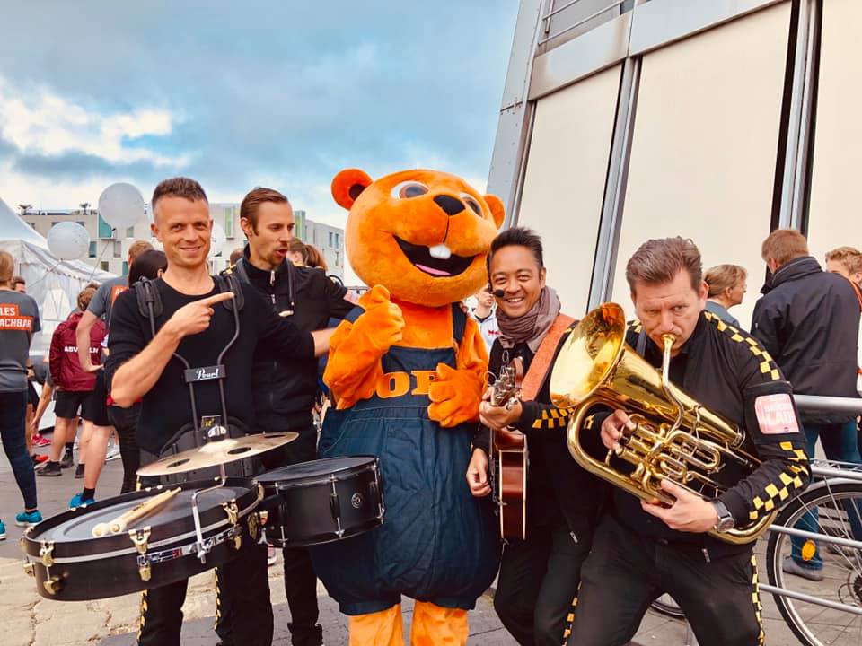 Die FOLLOW MEs unterhalten die Läufer und Gäste des 38. OBI Brückenlaufs bei bestem Wetter in Köln.
