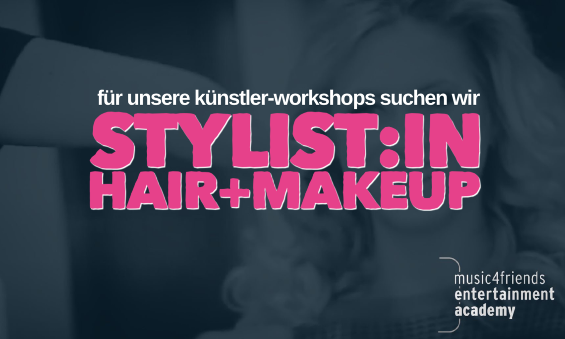 Die MEA (music4friends entertainment academy) sucht für die Entwicklung und Durchführung kompakter Styling / Hair / Makeup Workshops für unsere Künstler:innen eine professionelle Stylistin (m,w,d).