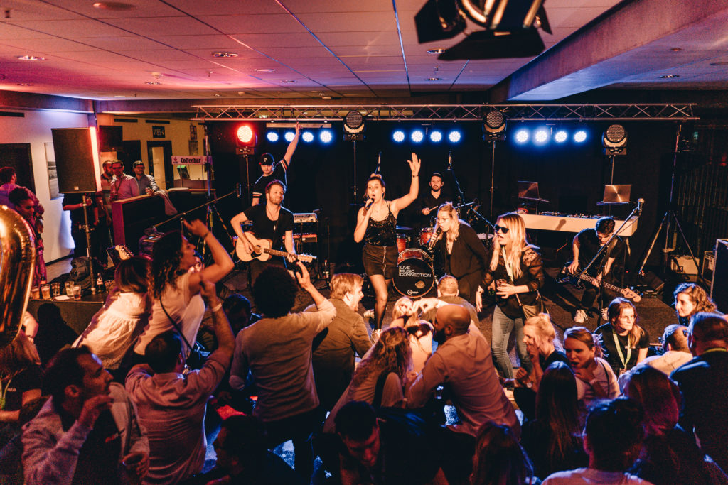 500 Gäste lud REAL DIGITAL zur Aftershowparty des e-Commerce Day in die VIP-Loungen des RheinEnergie Stadion in Köln. Top-Act des 10-jährigen Firmen-Jubiläum war unsere LIVE MUSIC CONNECTION.
