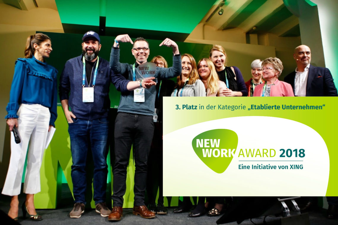 Hallo Sascha! Ihr kommt gerade alle aus Hamburg zurück, seht glücklich und auch etwas müde aus: „Wir haben uns schon über die Nominierung zum NEW WORK AWARD extrem gefreut und uns sofort dazu entschieden, mit dem kompletten Büroteam zur Bekanntgabe der Gewinner nach Hamburg zu reisen. Zum einen, um am NWX Kongress teilzunehmen und uns von Rednern wie Richard David Precht, Götz Werner oder Anselm Grün inspirieren zu lassen. Zum anderen war der Anlass ideal für eine tolle Dankeschön-Reise mit diesem großartigen Büroteam: wir wollten es also eh etwas knallen lassen – dass wir dann auch noch zu den Preisträgern gehören, hat uns dann beim Feiern sicher auch noch etwas beflügelt.“