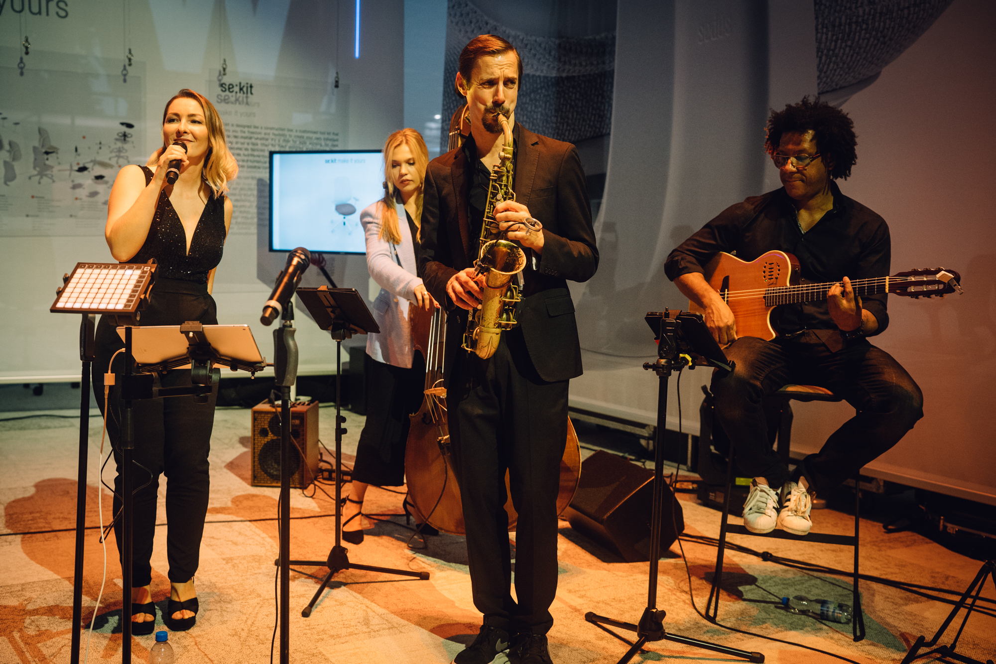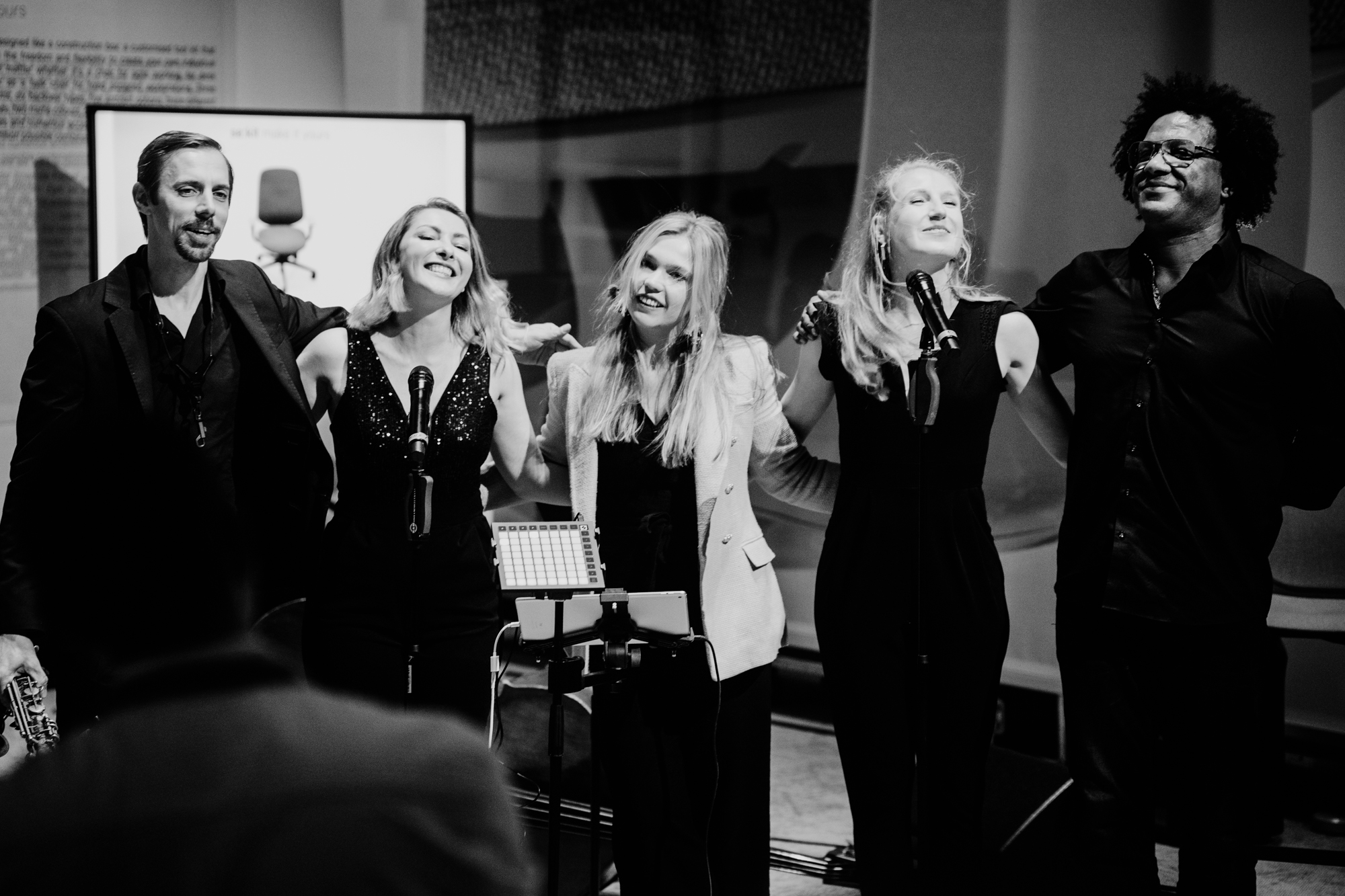 SSHHEE durften in der Premium 5er Besetzung für eine entspannte, lockere Atmosphäre sorgen, die Raum und Möglichkeit für Gespräche bot. Auch, wenn der ein oder andere Gast es sich nicht nehmen ließ, die Gelegenheit mit guter Livemusik für ein Tänzchen zu nutzen. So wurden gute Musik, leckere Getränke und interessante Gespräche schnell zum Messestand-Magneten für die internationalen Aussteller und Besucher der Messe.